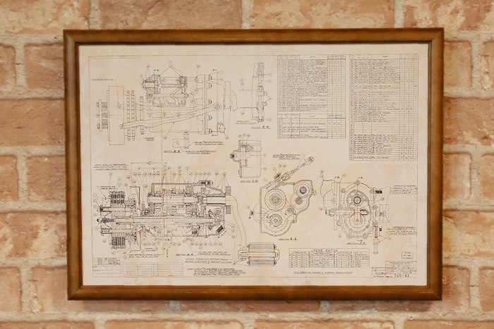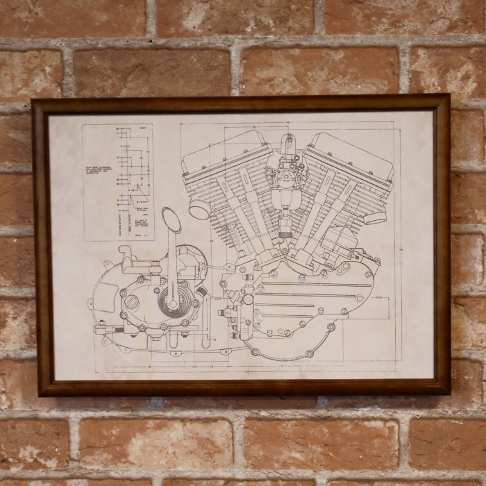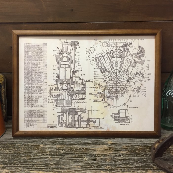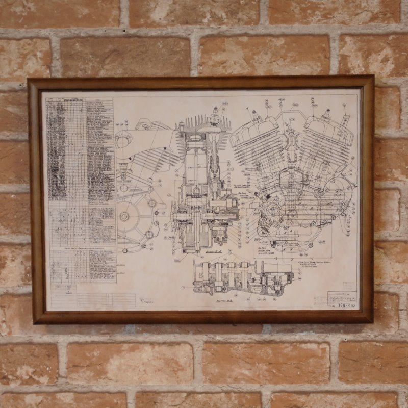 復刻ポスター B4フレーム入 ◆ ハーレー パンヘッドエンジン 設計図