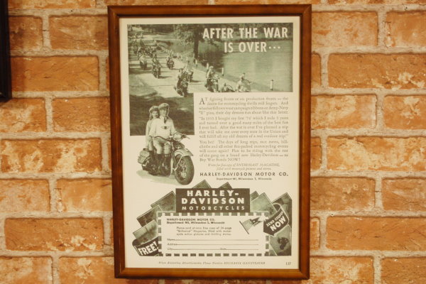 復刻ポスター B4フレーム付き ◆ ハーレー 戦後 1944 HARLEY バイカー
