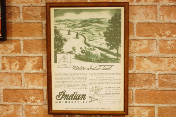 復刻ポスター B4フレーム付き ◆ インディアン モトサイクル バイカー