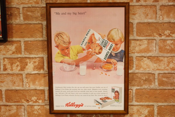復刻ポスター B4フレーム付き ◆ ケロッグ コーンフレーク 1955 兄弟