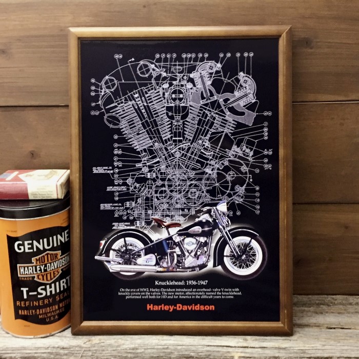 ハーレー ナックルヘッド アートポスター B4木製額入り ◆ バイク エンジン FB4-F23bk
