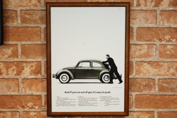 復刻ポスター B4フレーム付き ◆ VW ワーゲン ビートル 1962 ガス欠