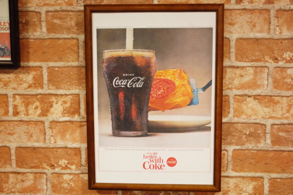 復刻ポスター B4フレーム付き ◆ コカコーラ ピザ グラス 1964