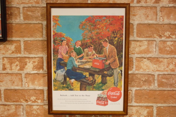 復刻ポスター B4フレーム付き ◆ コカコーラ ピクニック 秋 1950
