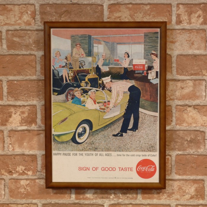 復刻ポスター B4フレーム付き ◆ Coca-cola コカコーラ 若者たち 1946