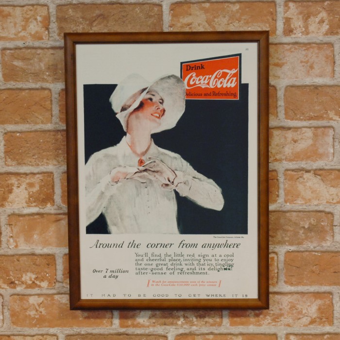 復刻ポスター B4フレーム付き ◆ コカコーラ 白い帽子の女性