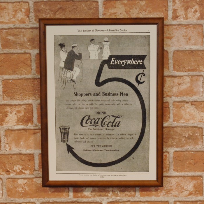 復刻ポスター B4フレーム付き ◆ コカコーラ どこでも5セント