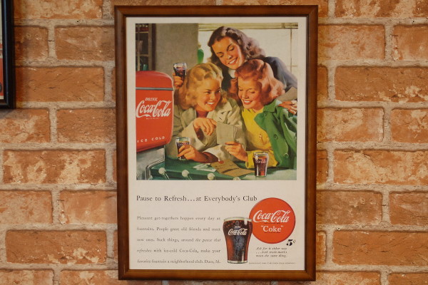 復刻ポスター B4フレーム付き ◆ コカコーラを飲む女性3人