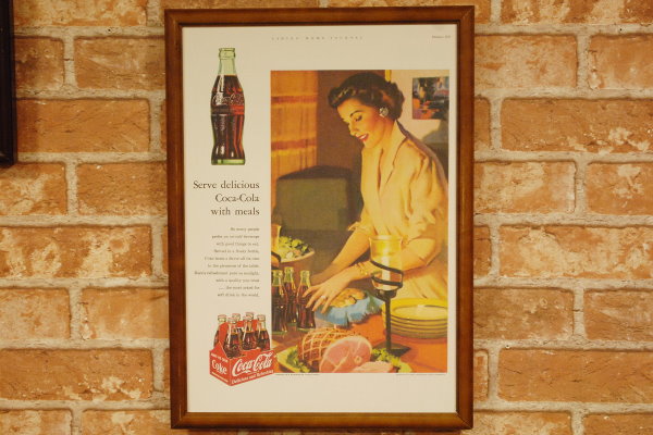 復刻ポスター B4フレーム付き ◆ コカコーラ 食事にはCola