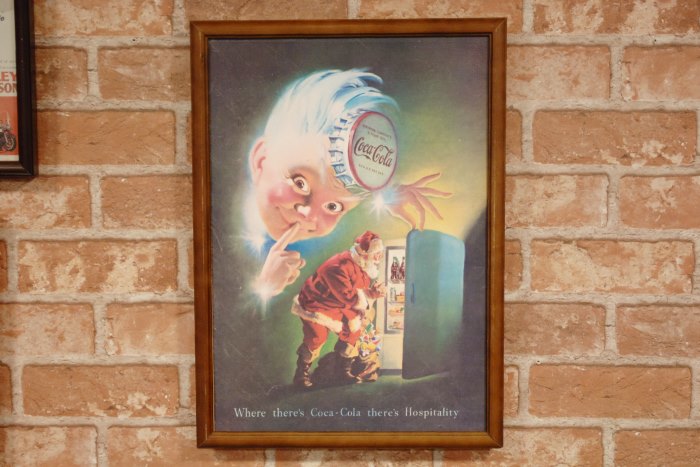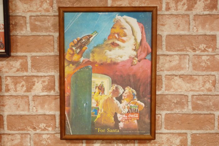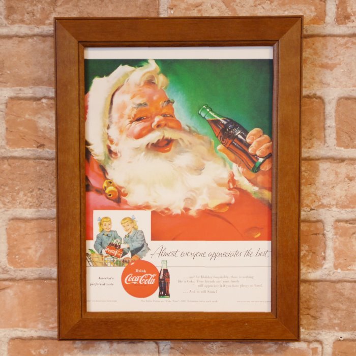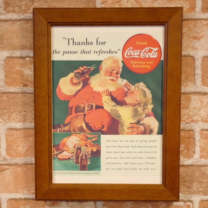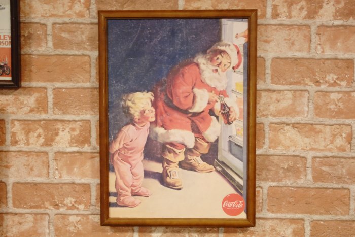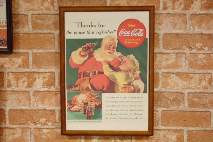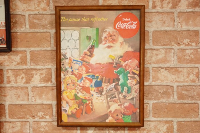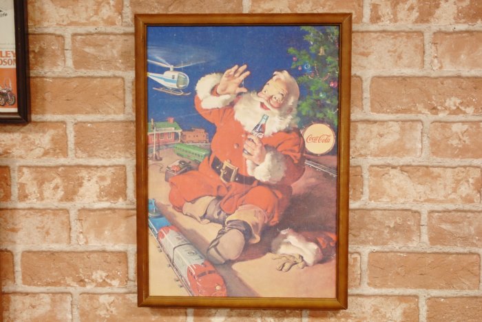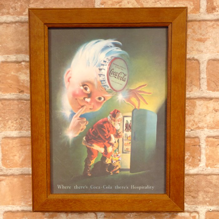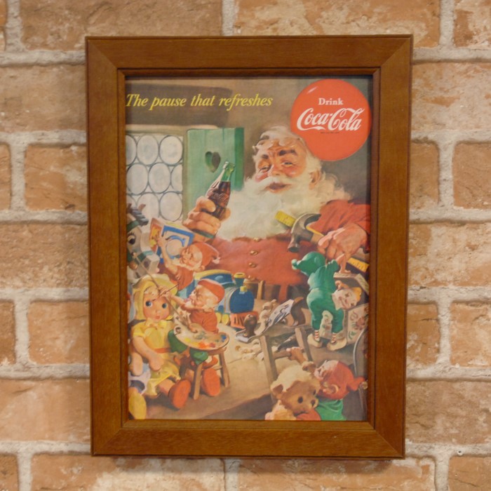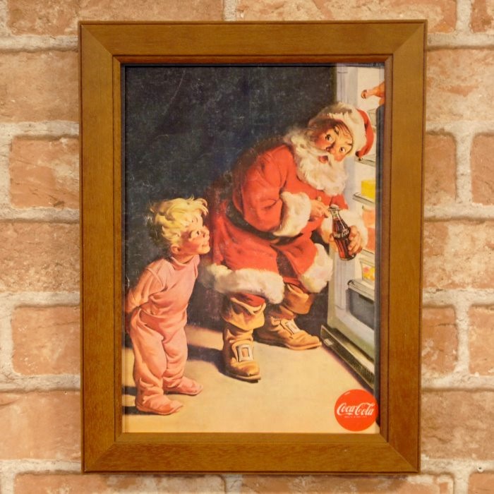 復刻ポスター B4フレーム付き ◆ コカコーラ サンタがコーラで一服 クリスマス