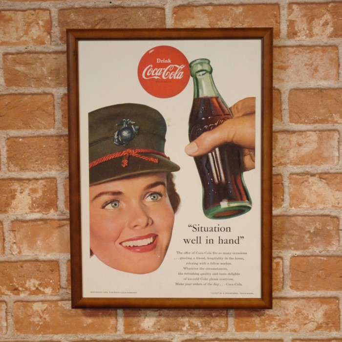 復刻ポスター B4フレーム付き ◆ コカコーラ 女性軍人と赤丸ロゴ USMC
