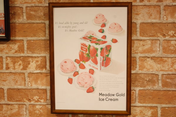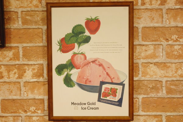 復刻ポスター B4フレーム付き ◆ Meadow Gold アイスクリーム イチゴ
