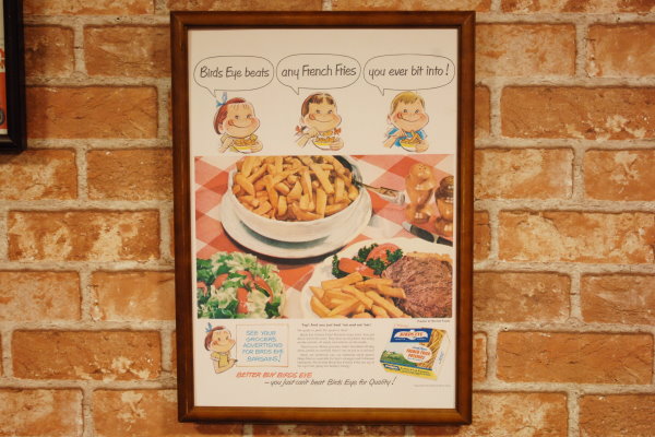 復刻ポスター B4フレーム付き ◆ バードアイ フライドポテト 1959 肉