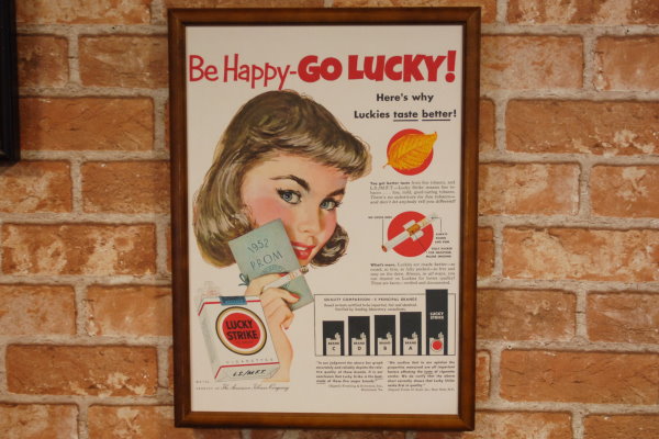 復刻ポスター B4フレーム付き ◆ ラッキーストライク 煙草 タバコ