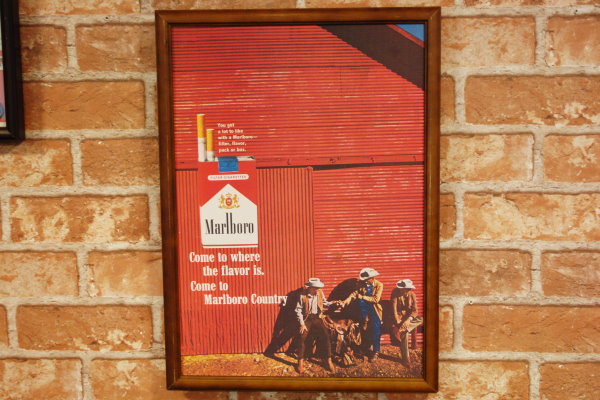 復刻ポスター B4フレーム付き ◆ Marlboro マルボロ 厩舎 休憩中 タバコ 1965