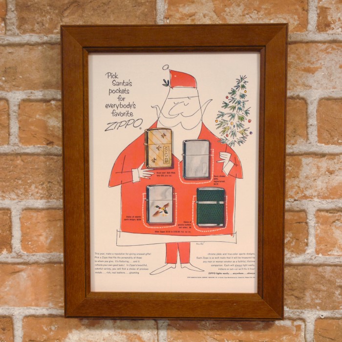 復刻ポスター B4フレーム付き ◆ サンタ ZIPPO クリスマス ジッポー広告