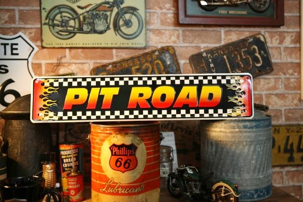 燃える PIT ROAD ストリート看板 ◆ 炎 ピットロード