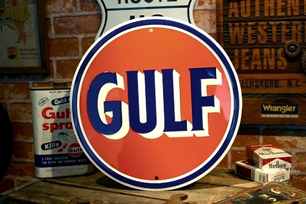 Gulf 旧ロゴ 丸型 看板 ◆ ガルフ オレンジディスク