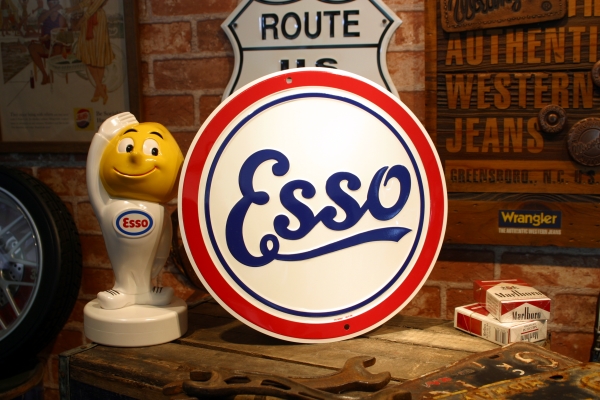 Esso 旧ロゴ 丸型プレート ◆ エッソ ガソリン・オイル