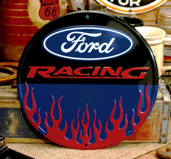 Ford RACING ロゴ 丸型 プレート ◆ フォード レーシング 炎