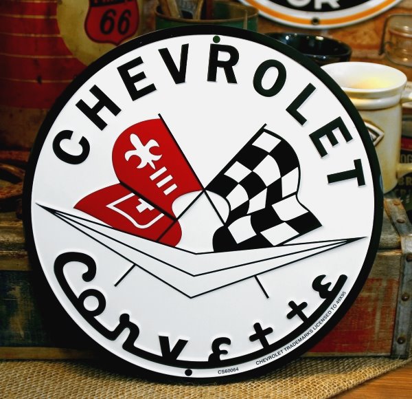 CHEVROLET Corvette 丸型 プレート ◆ コルベット ロゴ