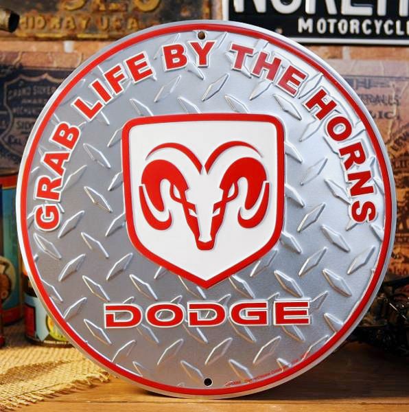 DODGE 羊ロゴ 丸型プレート ◆ ダッジ 鉄板風