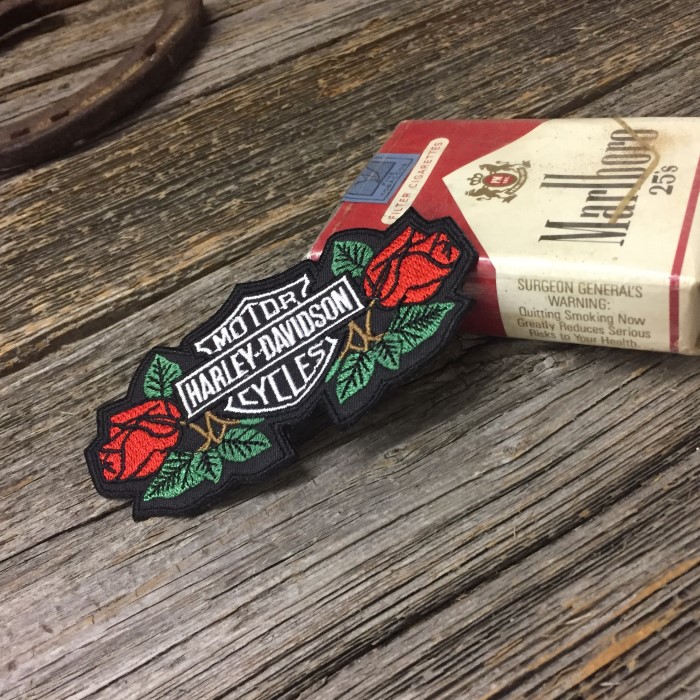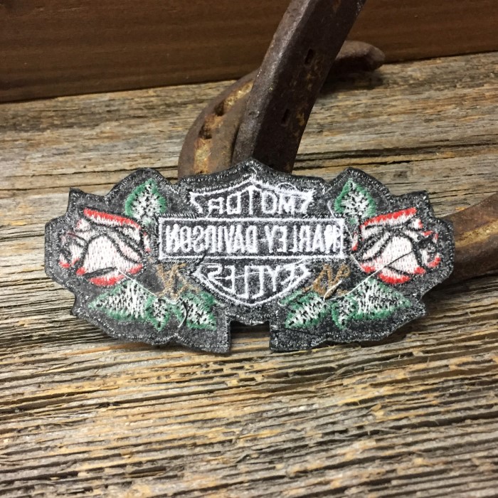 ハーレー ワッペン ロゴ & バラ 刺繍 ワッペン ◆ アイロン接着対応 パッチ B&S Harley HD 赤い薔薇 花 CAWP43